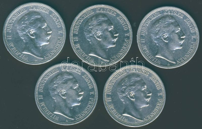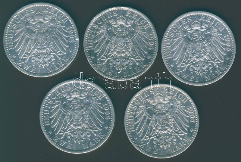 Német Birodalom/Császárság/Poroszország 1902-1907. 2M Ag (5klf) II.Vil... https://www.darabanth.com/de/85-Fernauktion/85.0/Numismatik/~540/Nemet-BirodalomCsaszarsagPoroszorszag-1902-1907-2M-Ag-5klf-IIVilmos-komplett-sor-T23plus-~II184073