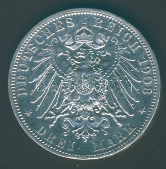 Német Birodalom/Császárság/Poroszország 1908. 3M Ag II.Vilmos T:2/3+ https://www.darabanth.com/de/85-Fernauktion/85.0/Numismatik/~540/Nemet-BirodalomCsaszarsagPoroszorszag-1908-3M-Ag-IIVilmos-T23plus~II184076