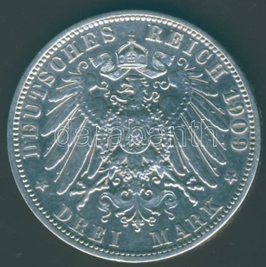 Német Birodalom/Császárság/Poroszország 1909. 3M Ag II.Vilmos T:2/3+ https://www.darabanth.com/de/85-Fernauktion/85.0/Numismatik/~540/Nemet-BirodalomCsaszarsagPoroszorszag-1909-3M-Ag-IIVilmos-T23plus~II184080