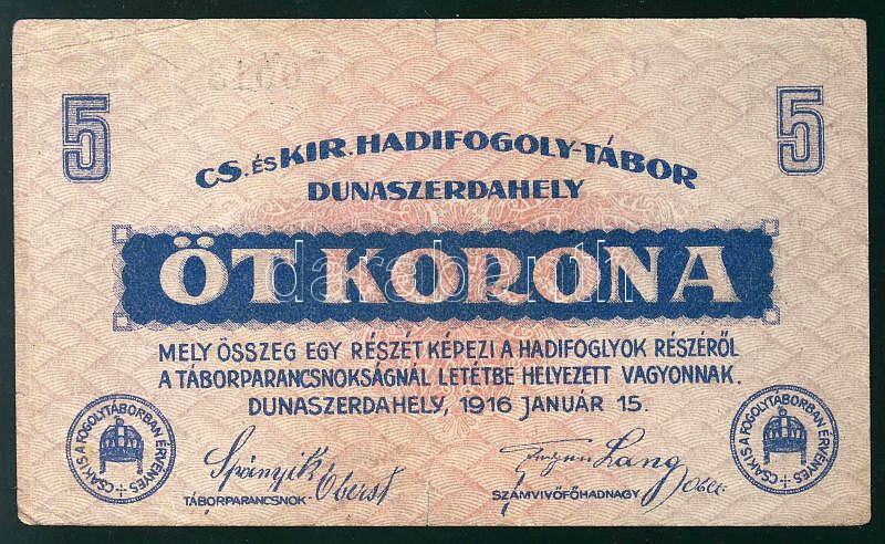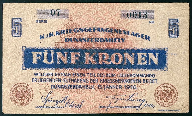 Dunaszerdahely/hadifogolytábor 1916. 5K T:III+ https://www.darabanth.com/de/85-Fernauktion/85.0/Numismatik/~545/Dunaszerdahelyhadifogolytabor-1916-5K-TIIIplus~II181095
