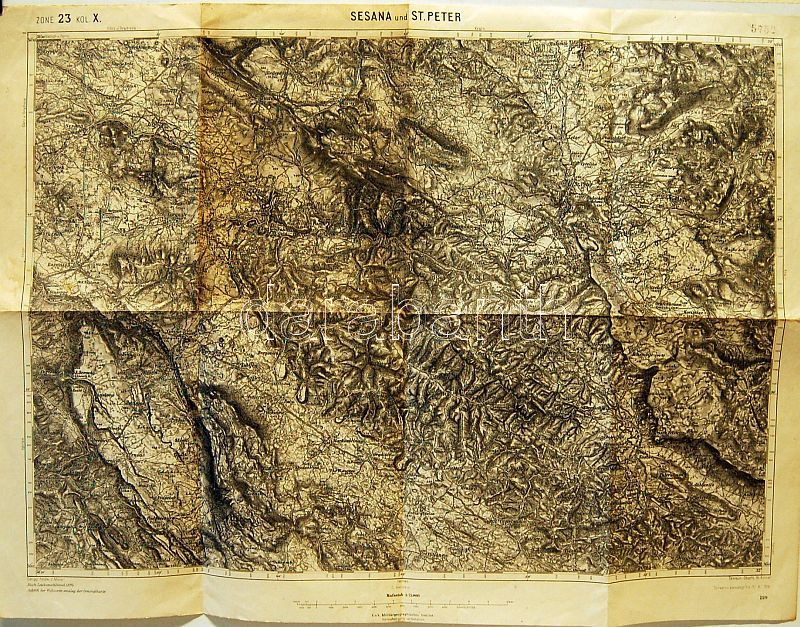 cca 1900 Sesana és St. Peter katonai térkép / Sesana and St. Peter mil... https://www.darabanth.com/de/88-Fernauktion/88.0/Andere-Sammelgebiete/~315/cca-1900-Sesana-es-St-Peter-katonai-terkep-Sesana-and-St-Peter-military-map-60x40cm~II190940