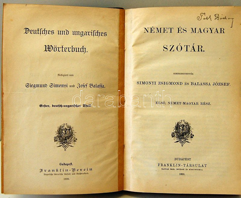1899 Magyar-Német, Német-magyar szótár 2 kötetben, Franklin társulat https://www.darabanth.com/de/88-Fernauktion/88.0/Andere-Sammelgebiete/~318/1899-Magyar-Nemet-Nemet-magyar-szotar-2-kotetben-Franklin-tarsulat~II191288
