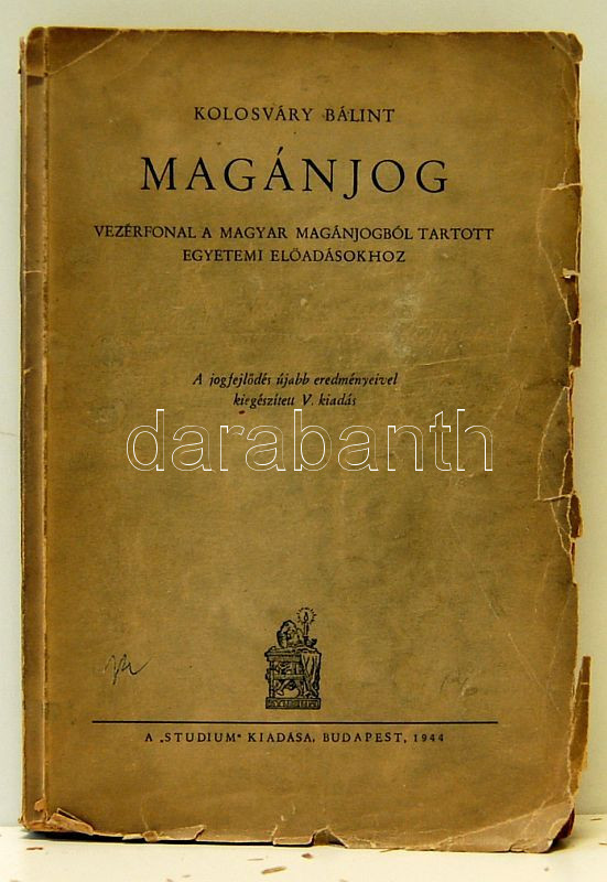 1944 Kolosváry Bálint: Magánjog https://www.darabanth.com/de/88-Fernauktion/88.0/Andere-Sammelgebiete/~318/1944-Kolosvary-Balint-Maganjog~II191669