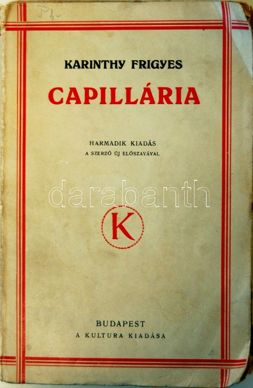 cca 1940 Karinthy Frigyes: Capillária harmadik kiadás (A Kultura kiadá... https://www.darabanth.com/de/88-Fernauktion/88.0/Andere-Sammelgebiete/~318/cca-1940-Karinthy-Frigyes-Capillaria-harmadik-kiadas-A-Kultura-kiadasa~II191719