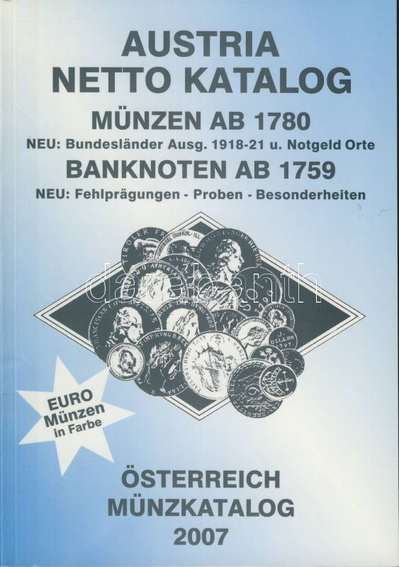 Austria Netto Katalog - osztrák és magyar érmék 1780-tól, bankjegyek 1... https://www.darabanth.com/de/88-Fernauktion/88.0/Numismatik/~334/Austria-Netto-Katalog--osztrak-es-magyar-ermek-1780-tol-bankjegyek-1759-tol-2007~II191718