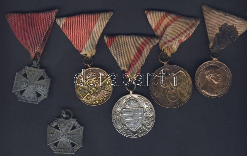 Beschreibung: 1914-18. 6db osztrák, magyar és belga háborús érdemérem T:2,2/3