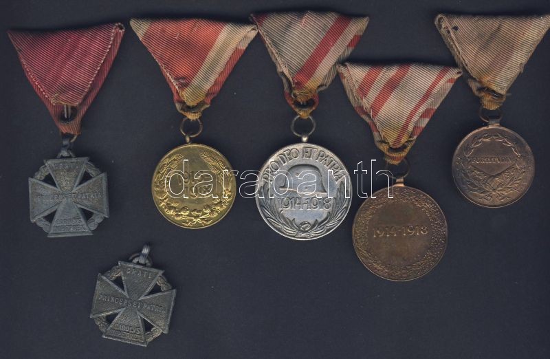 1914-18. 6db osztrák, magyar és belga háborús érdemérem T:2,2/3 https://www.darabanth.com/de/88-Fernauktion/88.0/Numismatik/~337/1914-18-6db-osztrak-magyar-es-belga-haborus-erdemerem-T2-23~II192669