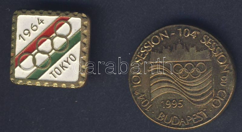 Beschreibung: 1964. "Tokió-Olimpia" zománcozott kitűző + 1995. "CIO - 104.IOC - Budapest" olimpiai zseton T:2