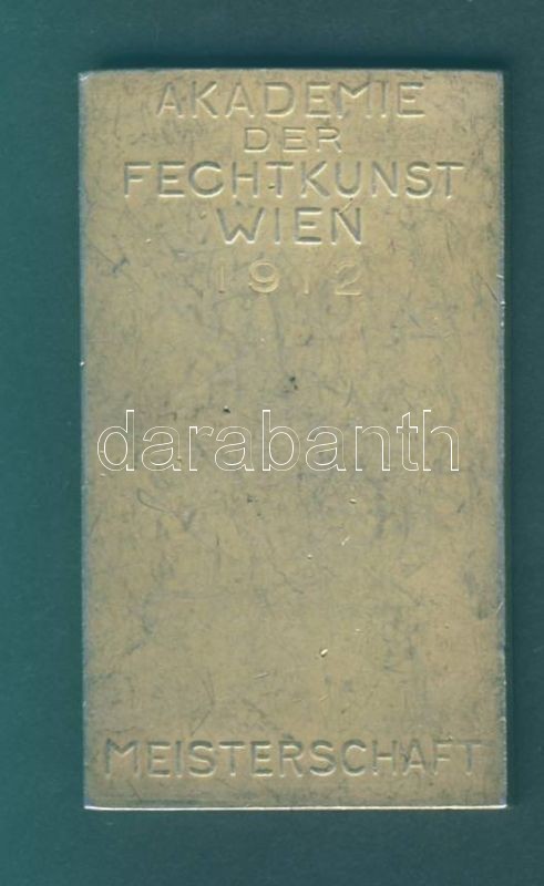 Ausztria 1912. "Vívóakadémia Bajnokság" rézplakett T:2 https://www.darabanth.com/de/88-Fernauktion/88.0/Numismatik/~337/Ausztria-1912-Vivoakademia-Bajnoksag-rezplakett-T2~II190878