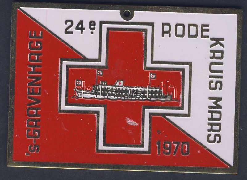 Beschreibung: Hollandia 1970. szögletes, zománcozott modern plakett "Henry Dunant hajó - Vöröskereszt" T:2