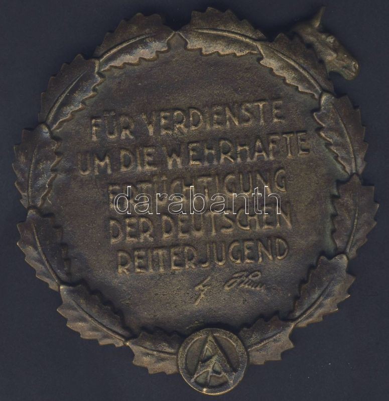 Beschreibung: Német 3. Birodalom DN cca 1930-as évek "...Deutschen Reiterjugend (Német Ifjúlovas Szövetség) nagyalakú Br plakett, szignált T:2 R!