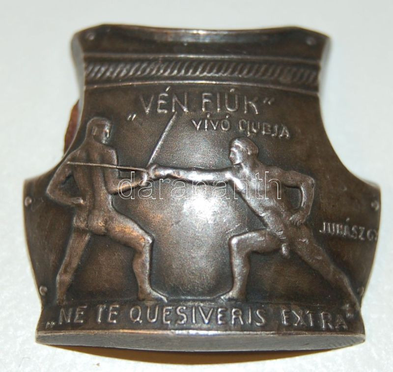 cca 1900-as évek eleje "Vén Fiúk Vívóklubja" vívómellény alakú Ag plak... https://www.darabanth.com/de/88-Fernauktion/88.0/Numismatik/~337/cca-1900-as-evek-eleje-Ven-Fiuk-Vivoklubja-vivomelleny-alaku-Ag-plakett-10-17g-RR-T2~II192566