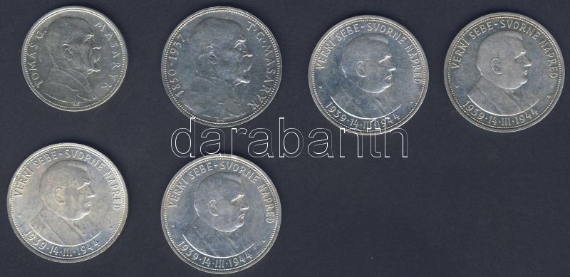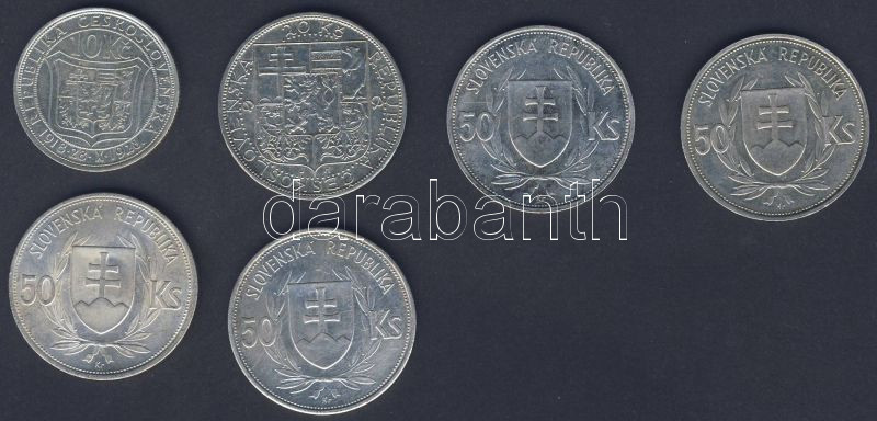 Beschreibung: Csehszlovákia 1928. 10K Ag "Masaryk" + 1937. 20K Ag "Masaryk" T:2,2/3 + Szlovákia 1944. 50K Ag "Tiso" (4x) T:2/3,3 ph.