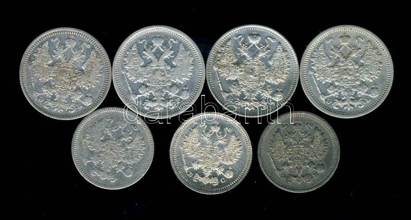 Oroszország 10k Ag 1861,1912,1915 + 15k Ag 1904,1906,1908,1916 T:3,3- https://www.darabanth.com/de/88-Fernauktion/88.0/Numismatik/~342/Oroszorszag-10k-Ag-1861-1912-1915-plus-15k-Ag-1904-1906-1908-1916-T3-3-~II192339