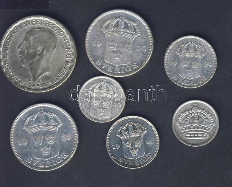 Beschreibung: Svédország 10ö Ag 1940,1954 + 25ö Ag 1914,1929 + 50ö Ag 1935,1938 + 1K Ag 1947 Összesen 7db! T:2/3,3