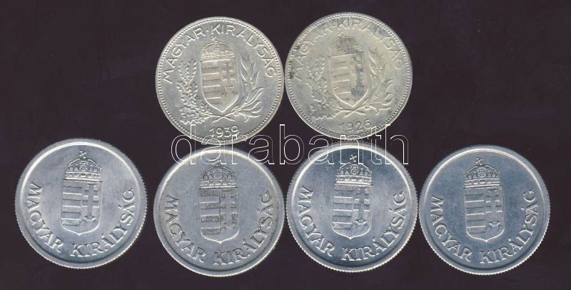 1926. 1P Ag T:3 + 1939. 1P Ag T:1/2 + 1941,1942,1943,1944 1P Alu T:1/2... https://www.darabanth.com/de/88-Fernauktion/88.0/Numismatik/~343/1926-1P-Ag-T3-plus-1939-1P-Ag-T12-plus-1941-1942-1943-1944-1P-Alu-T12-2-23~II192517