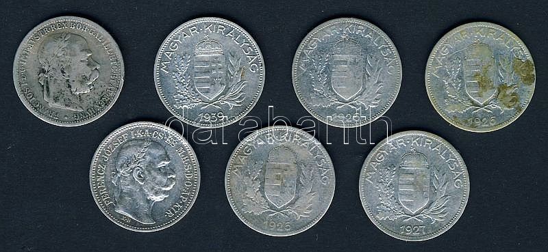 Beschreibung: 1K Ag 1915 + 1P Ag 1926 (3x),1927,1939 Ausztria 1898. 1K Ag Összesen 7db! T:2/3,3,3- ph.