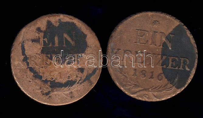 Ausztria/magyar verdejel 1816B+S 1Kr 2klf verdejel T:3/4+ https://www.darabanth.com/de/88-Fernauktion/88.0/Numismatik/~343/Ausztriamagyar-verdejel-1816BplusS-1Kr-2klf-verdejel-T34plus~II192740