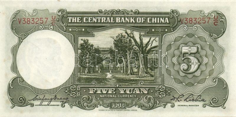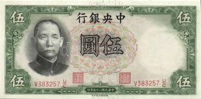 Kína/Köztársaság/Central Bank 1936. 5Y (2x) egymásutáni sorszámmal T:I https://www.darabanth.com/de/88-Fernauktion/88.0/Numismatik/~345/KinaKoztarsasagCentral-Bank-1936-5Y-2x-egymasutani-sorszammal-TI~II192536