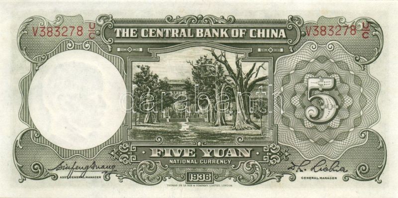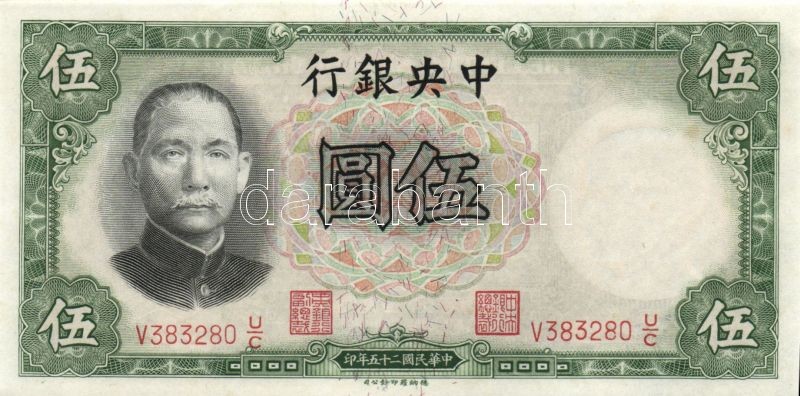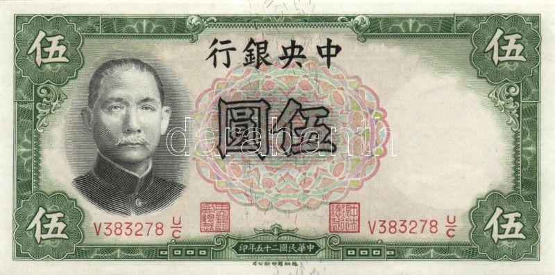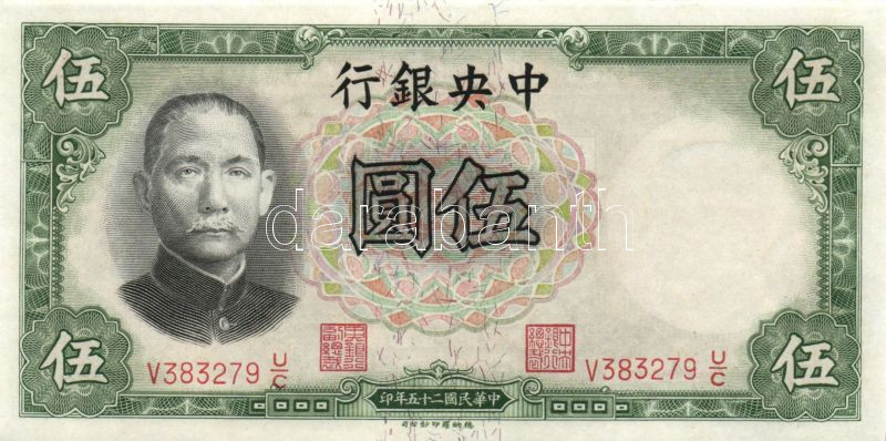 Kína/Köztársaság/Central Bank 1936. 5Y (3x) egymásutáni sorszámmal T:I https://www.darabanth.com/de/88-Fernauktion/88.0/Numismatik/~345/KinaKoztarsasagCentral-Bank-1936-5Y-3x-egymasutani-sorszammal-TI~II192537
