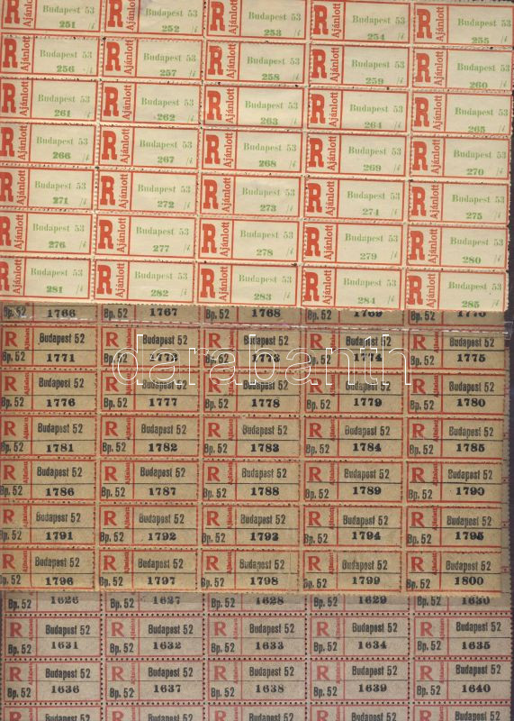 Beschreibung: 135 db használatlan ajánlási ragjegy a negyvenes évekből ívdarabokban