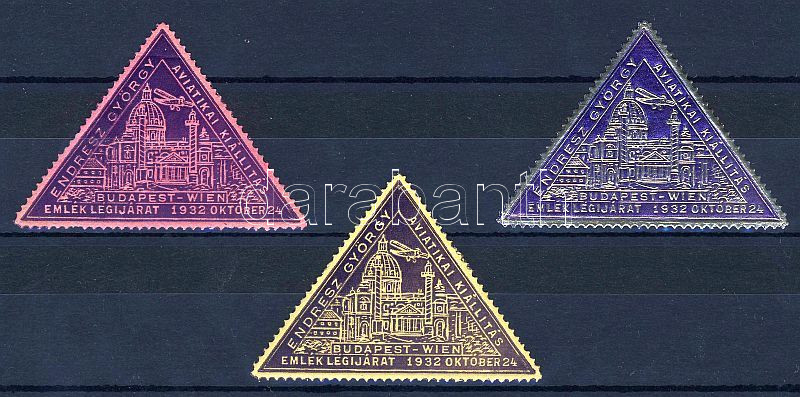 Beschreibung: 1932 Endresz aviatikai kiállítás 3 klf levélzáró