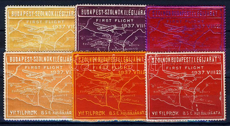 Beschreibung: 1937 Szolnok Budapest I légijárat 6 klf levélzárója