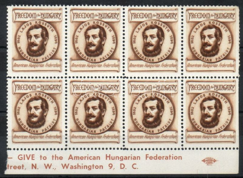 Beschreibung: Amerikai Magyar Szövetség Kossuth levélzáró nyolcastömb
