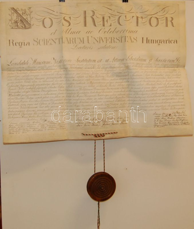 1832 Dekoratív magyar jogi egyetemi diploma kutyabőrön 65x48cm https://www.darabanth.com/de/89-Fernauktion/89.0/Andere-Sammelgebiete/~1293/1832-Dekorativ-magyar-jogi-egyetemi-diploma-kutyaboron-65x48cm~II196067