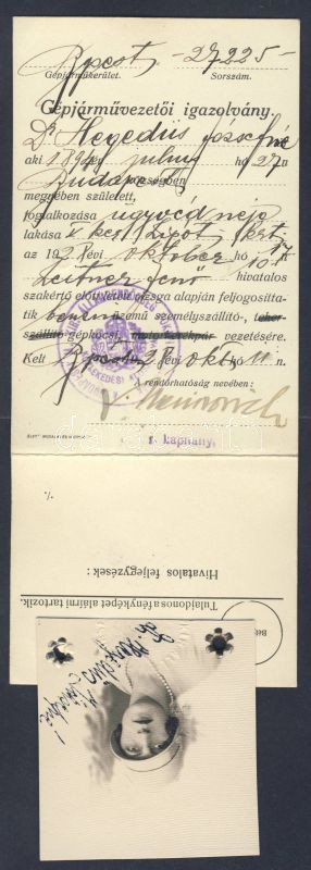 Beschreibung: 1928 Fényképes gépjárművezetői igazolvány