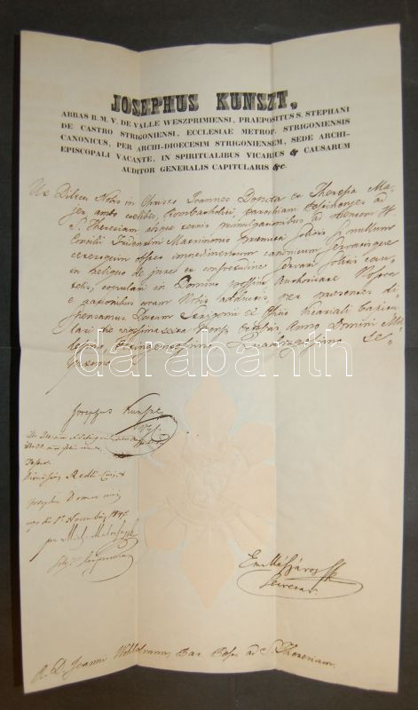 1847 Kunszt püspök által aláírt levél https://www.darabanth.com/de/89-Fernauktion/89.0/Andere-Sammelgebiete/~1294/1847-Kunszt-puspok-altal-alairt-level~II196085