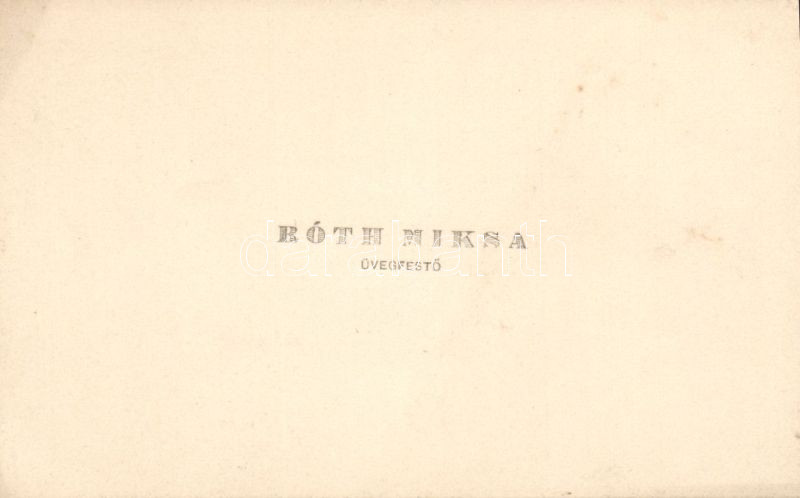 Beschreibung: 1898 Róth Miksa üvegfestő névjegykártyája, hátoldalán saját kezű irásával