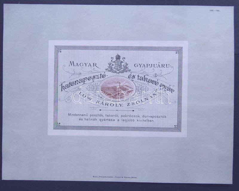 cca 1890 Zsolnai gyapjuárú-gyár hirdetése (litho) 28x22cm / litho adve... https://www.darabanth.com/de/89-Fernauktion/89.0/Andere-Sammelgebiete/~1317/cca-1890-Zsolnai-gyapjuaru-gyar-hirdetese-litho-28x22cm-litho-advertising-of-a-woolware-fact~II196063