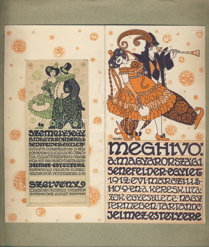 Beschreibung: 1912 Budai Iván: szép szecessziós meghívó és jegy