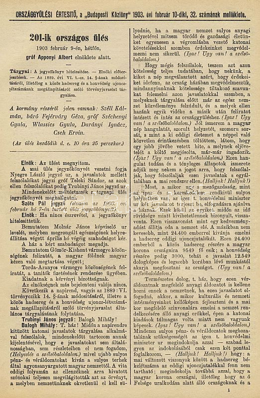 Az Országgyűlés 1903 február 9-i ülésének nyomtatott jegyzőkönyve https://www.darabanth.com/de/89-Fernauktion/89.0/Andere-Sammelgebiete/~1384/Az-Orszaggyules-1903-februar-9-i-ulesenek-nyomtatott-jegyzokonyve~II194336