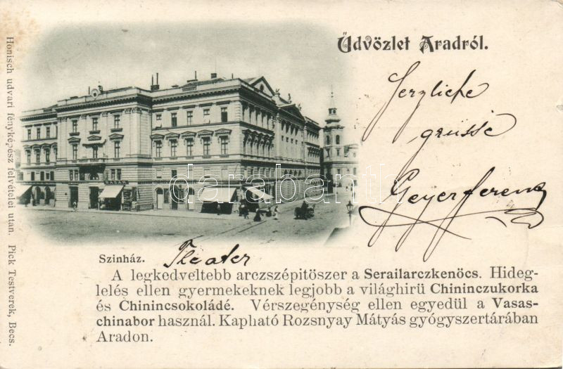 1899 Arad with advertising https://www.darabanth.com/de/89-Fernauktion/89.0/Ansichtskarten/~1306/1899-Arad-with-advertising~II195232
