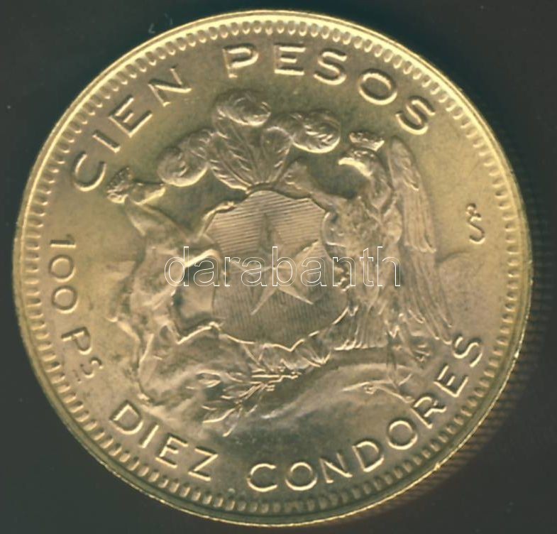 Chile 1956. 100P Au 20,3397g T:2 https://www.darabanth.com/de/89-Fernauktion/89.0/Numismatik/~1398/Chile-1956-100P-Au-20-3397g-T2~II196357