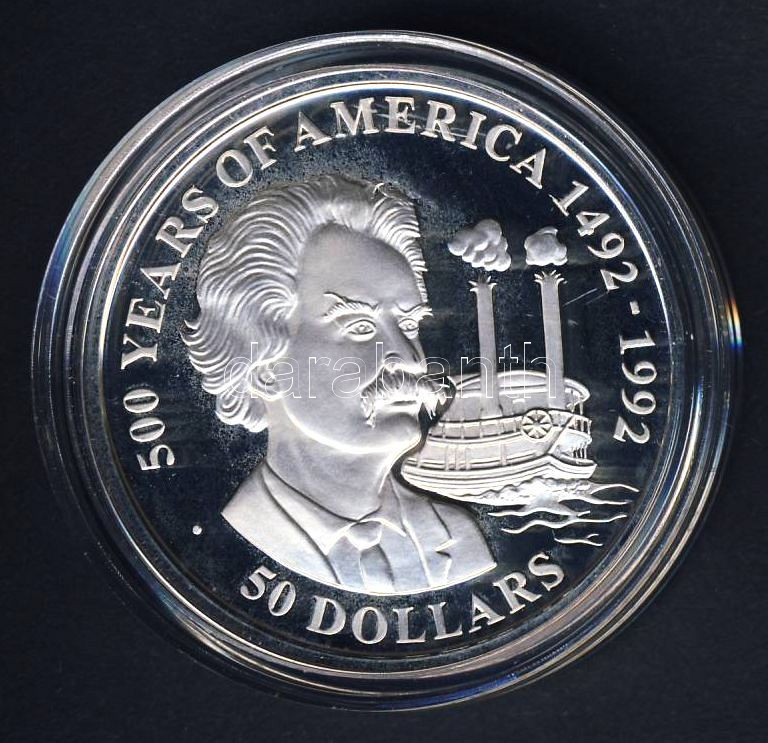 Cook szigetek 1990. 50$ Ag "Amerika 500 éve-Samuel Clemens, hajó" T:PP https://www.darabanth.com/de/89-Fernauktion/89.0/Numismatik/~1400/Cook-szigetek-1990-50USD-Ag-Amerika-500-eve-Samuel-Clemens-hajo-TPP~II196141