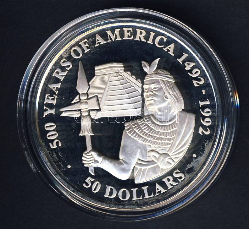 Beschreibung: Cook szigetek 1990. 50$ Ag "Amerika 500 éve-inka herceg" T:PP