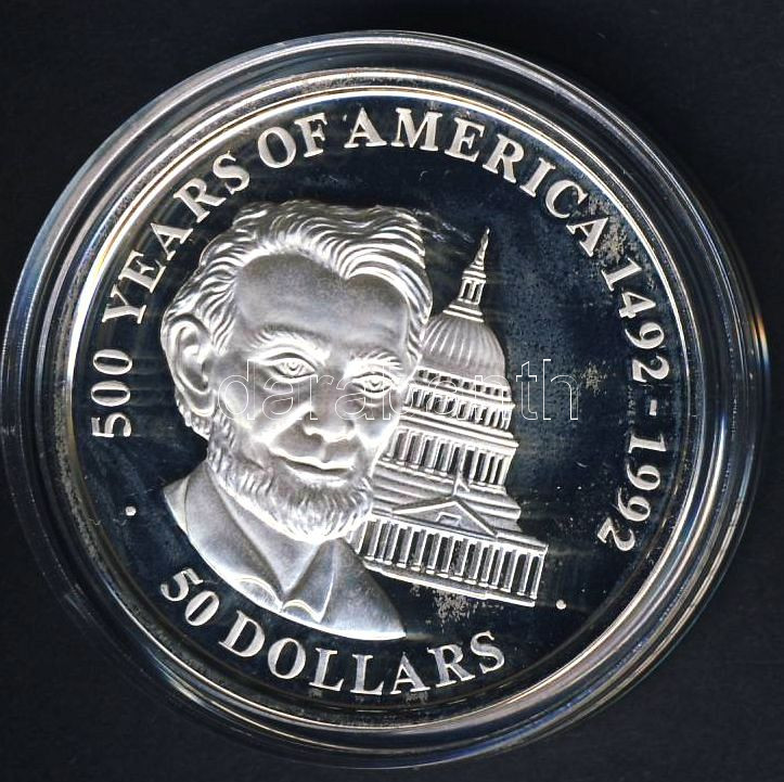 Cook szigetek 1991. 50$ Ag "Amerika 500 éve-Abraham Lincoln" T:PP https://www.darabanth.com/de/89-Fernauktion/89.0/Numismatik/~1400/Cook-szigetek-1991-50USD-Ag-Amerika-500-eve-Abraham-Lincoln-TPP~II196150