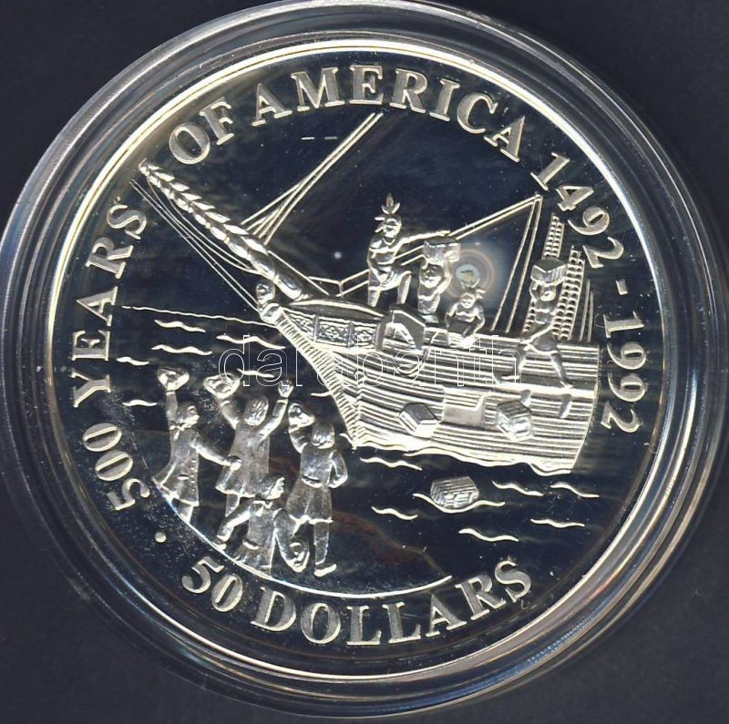 Beschreibung: Cook szigetek 1991. 50$ Ag "Amerika 500 éve-Bostoni teadélután" T:PP