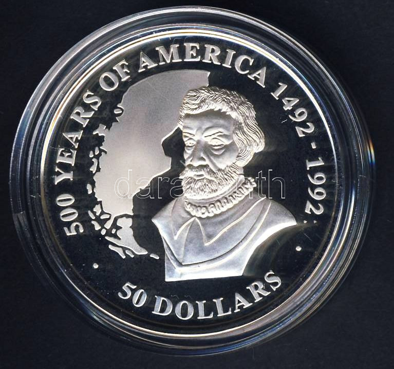 Beschreibung: Cook szigetek 1991. 50$ Ag "Amerika 500 éve-Ferdinand Magellan" T:PP