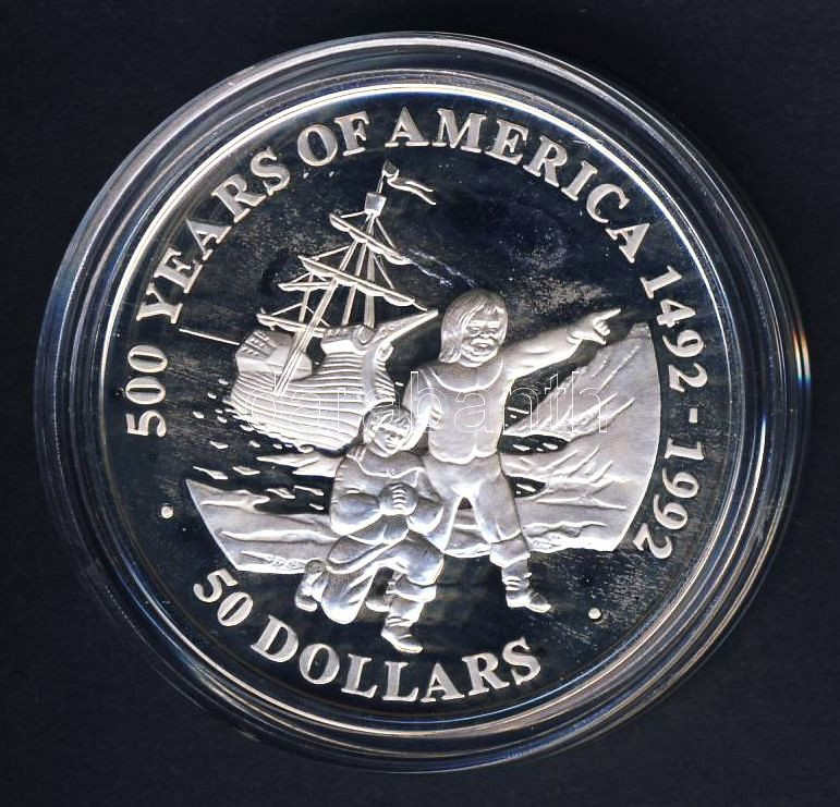 Beschreibung: Cook szigetek 1991. 50$ Ag "Amerika 500 éve-Mayflower" T:PP