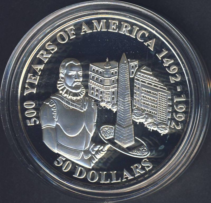 Beschreibung: Cook szigetek 1992. 50$ Ag "Amerika 500 éve-Pedro de Mendoza" T:PP