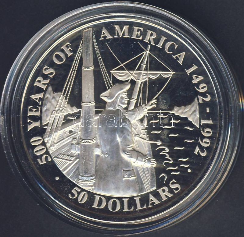 Cook szigetek 1992. 50$ Ag "Amerika 500 éve-Vitus Bering, hajó" T:PP https://www.darabanth.com/de/89-Fernauktion/89.0/Numismatik/~1400/Cook-szigetek-1992-50USD-Ag-Amerika-500-eve-Vitus-Bering-hajo-TPP~II196159