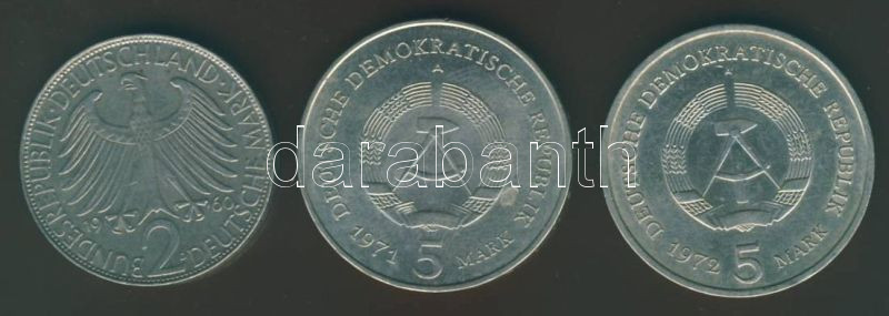 Beschreibung: NSZK 1960D 2M "Planck" T:2-/3+ + NDK 1971-72. 5M (2X) mindkettő klf évszámmal és motívummal T:2