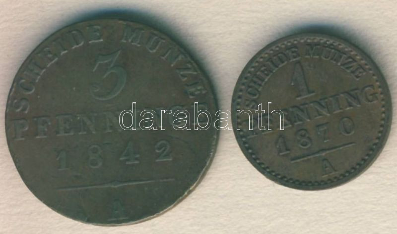Német Államok/Poroszország 1842A 3Pf + 1870A 1Pf T:2/3 https://www.darabanth.com/de/89-Fernauktion/89.0/Numismatik/~1400/Nemet-AllamokPoroszorszag-1842A-3Pf-plus-1870A-1Pf-T23~II196309