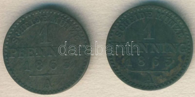 Német Államok/Poroszország 1863A 1Pf T:3 + 1865A 1Pf T:2-/3 https://www.darabanth.com/de/89-Fernauktion/89.0/Numismatik/~1400/Nemet-AllamokPoroszorszag-1863A-1Pf-T3-plus-1865A-1Pf-T2-3~II196313