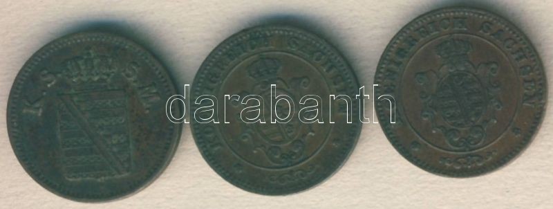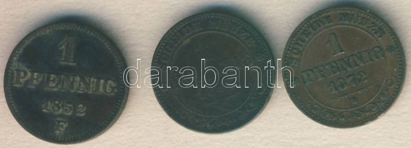 Német Államok/Szászország 1852F 1Pf + 1865B 1Pf + 1872B 1Pf T:3 https://www.darabanth.com/de/89-Fernauktion/89.0/Numismatik/~1400/Nemet-AllamokSzaszorszag-1852F-1Pf-plus-1865B-1Pf-plus-1872B-1Pf-T3~II196310