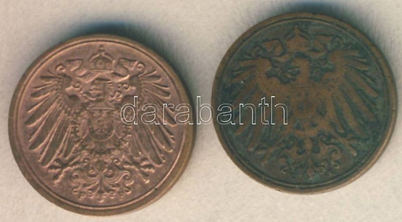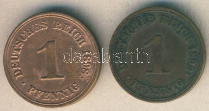 Német Birodalom / Császárság 1898F 1Pf T:3+ + 1899E 1Pf T:3 https://www.darabanth.com/de/89-Fernauktion/89.0/Numismatik/~1400/Nemet-Birodalom-Csaszarsag-1898F-1Pf-T3plus-plus-1899E-1Pf-T3~II196333